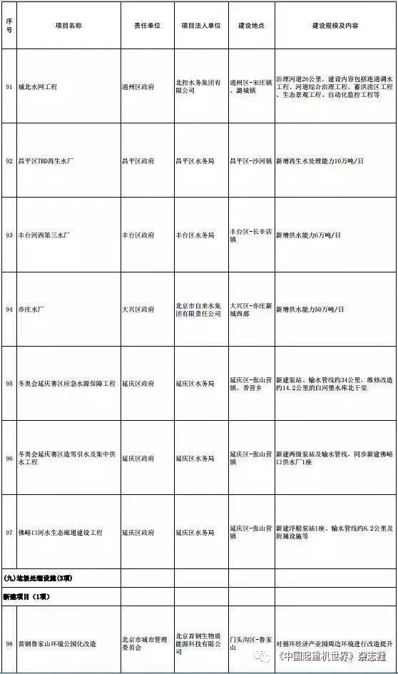 8.水務工程17個,重點實施南水北調河西支線、昌平區(qū)TBD再生水廠PPP項目等;