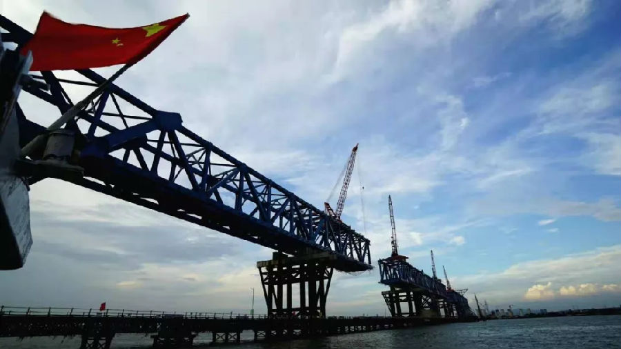 8月25日上午10時18分,隨著橫跨洪奇瀝水道南北兩邊的鋼桁梁成功對接,南沙港鐵路跨洪奇瀝特大橋360米跨徑的主跨順利實現(xiàn)合龍,一舉超越主跨336米的滬通鐵路天生港公鐵合建橋,成為世界最大跨度的鐵路鋼桁柔性拱結(jié)構(gòu)橋梁。