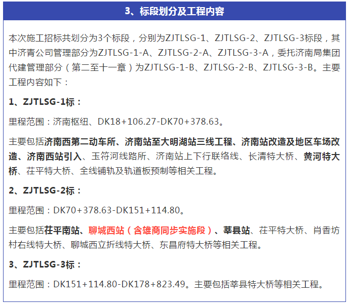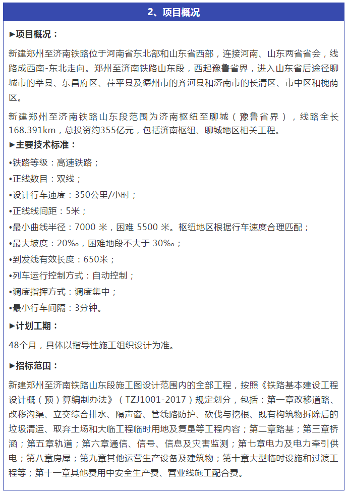 昨天,濟(jì)青高速鐵路有限公司正式發(fā)布了《新建鄭州至濟(jì)南鐵路山東段站前工程施工總價(jià)承包招標(biāo)公告》,這標(biāo)志著鄭濟(jì)高鐵山東段即將進(jìn)入正式施工階段。計(jì)劃總工期4年,預(yù)計(jì)2020年1月開工,2023年底建成通車。