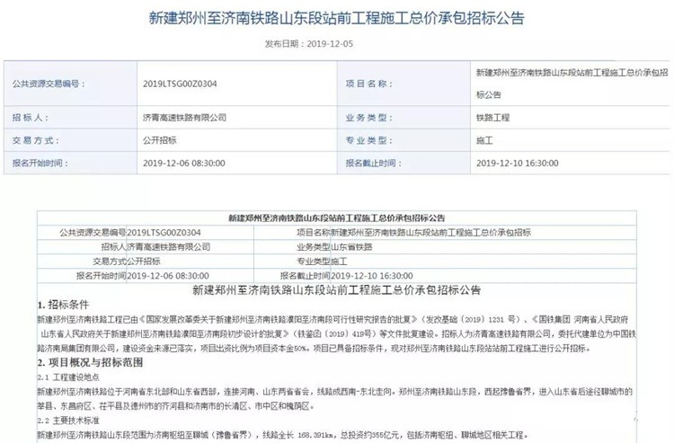 即將開工!鄭濟(jì)高鐵山東段施工招標(biāo) 預(yù)計(jì)2023年底建成通車 —— 文章正文2019-12-10