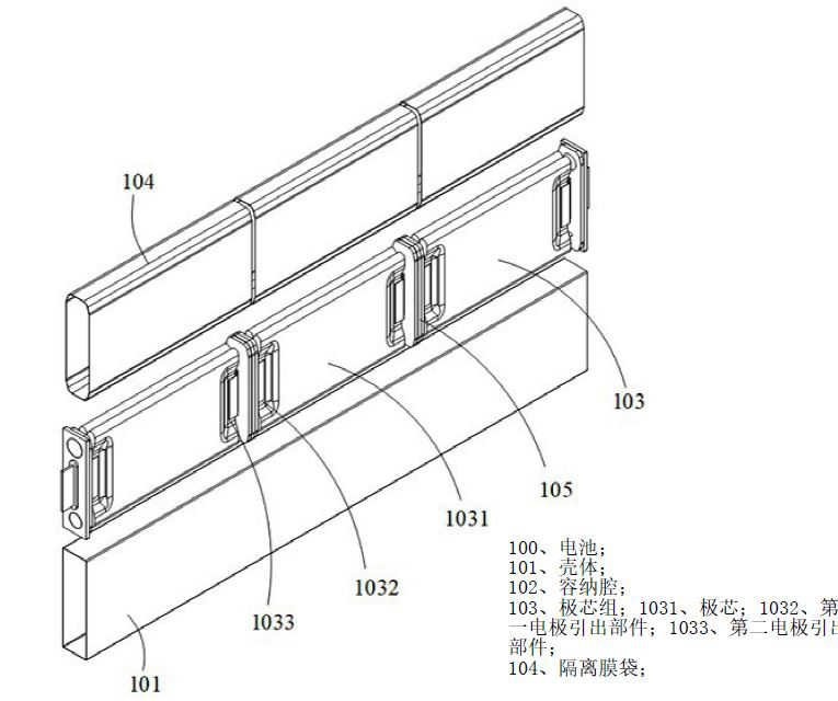從刀片電池的專利來看,一個刀片電池內(nèi),包含多個容納腔,每一個容納腔包含一個極芯,容納腔通過隔板隔開??瓷先ゾ腿缤瑤讉€電芯組成一個串聯(lián)模組。
